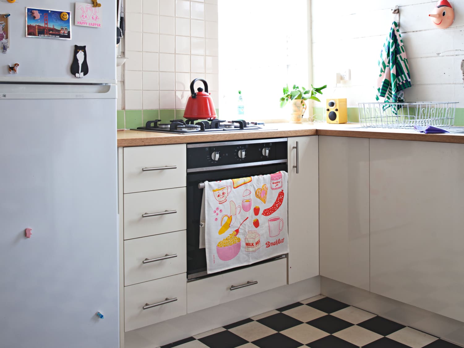 Mix metal and marble: The kitchen can be outfitted with butcher-block countertops and cabinetry, while the island can be topped with brass or marble to give an artistic look.